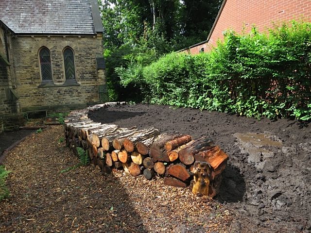 Potager surélevé en buches de bois. Il y a toujours des conifères que le vent fait tomber et ce bois n'est pas utilisable pour le poêle à bois. Donc voilà une belle petite récupération.