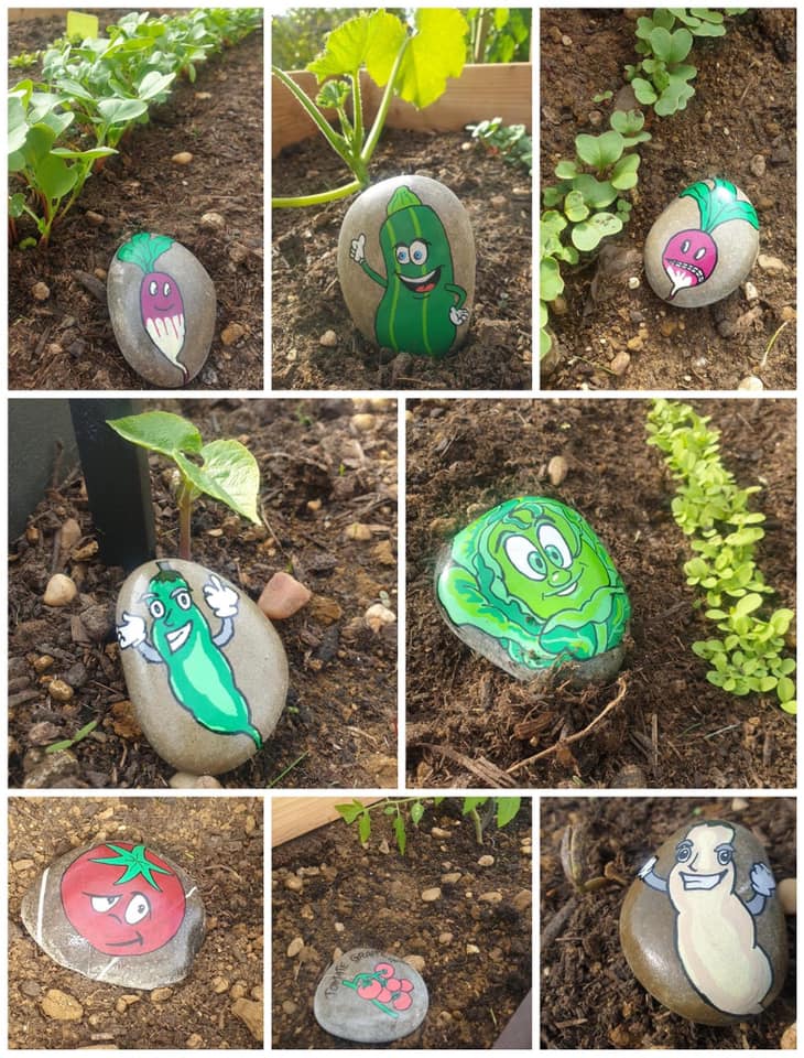 Une idée originale pour faire des marqueurs de potager, avec de la peinture, des cailloux ou galets. 2 ou 3 couches de peinture acrylique sont conseillées. Pour finir, il est préférable d’appliquer un revêtement acrylique clair. Cela permettra que la peinture résiste aux intempéries.