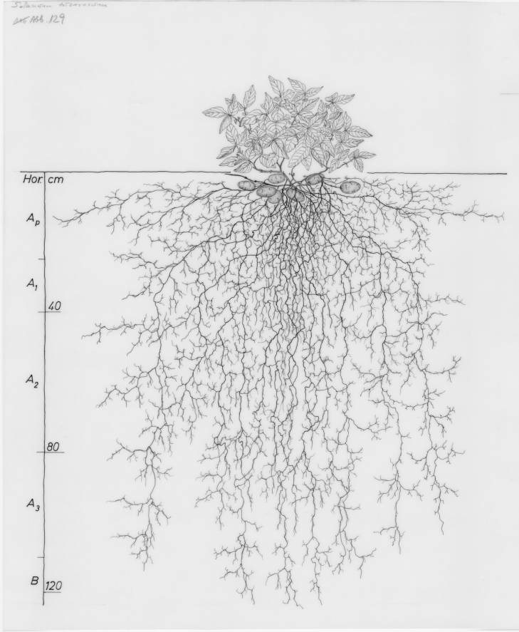 La pomme de terre ou patate, ses racines peuvent aller jusqu’à 1,20 mètres.