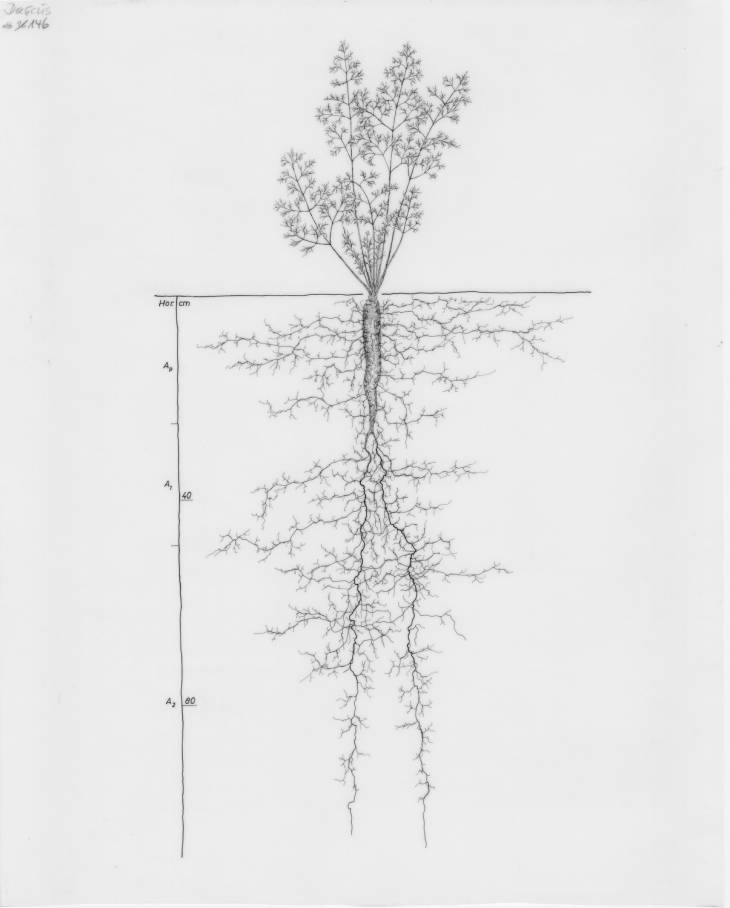 C’est un travail réalisés par trois chercheurs de l’Institut de sociologie végétale en Autriche. Pendant 60 ans, ils ont collaboré à un énorme «atlas des racines» qui cartographie les trajectoires souterraines des plantes européennes communes. Les images sont en ligne grâce à Wageningen University & Research, une université néerlandaise connue pour ses programmes agricoles.