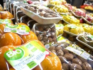 Les supermarchés ont fait le pari de proposer au consommateur la même offre, mais avec le label Bio. Et dans ses rayons, un détail frappe tout de suite : les fruits et légumes sont emballés dans du polyester. Par quatre ou par deux, les poivrons et les courgettes d’Espagne sont vendues en plein hiver, soigneusement emballés. Au rayon bio des supermarchés, on trouve donc des fruits et légumes importés, hors saison et emballés. Comment en est-on arrivé à cette aberration ?